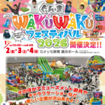 ぐんまWAKUWAKUフェスティバル2026 2026年1月2 – 4日 カテゴリ: 遊ぶ 約20体のふわふわがGメッセに集結!! そのほかアミューズメント遊具やキャラクタショーなど 楽しい企画がたくさんあるよ!!