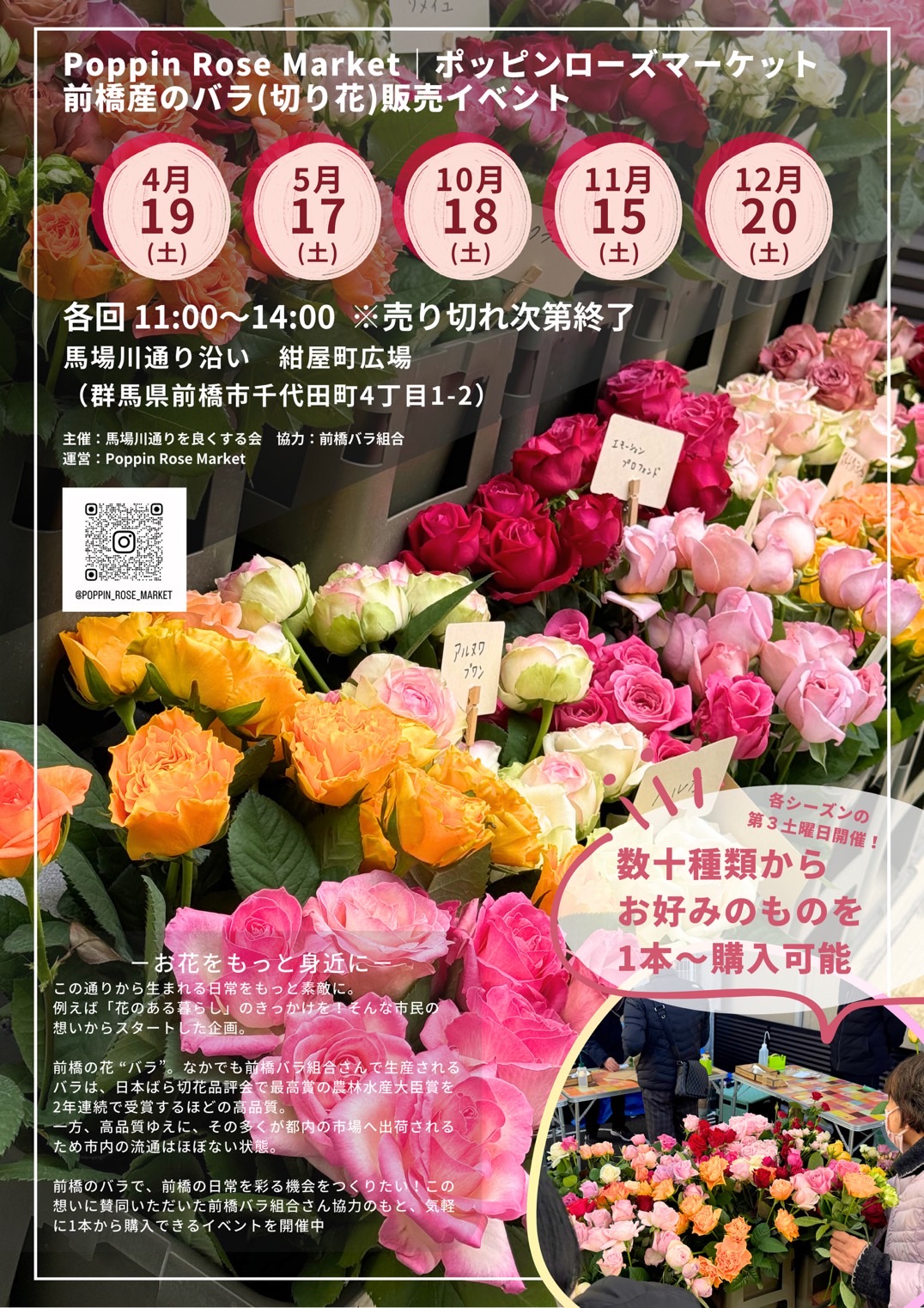 前橋バラ組合と馬場川通りは一緒にバラを販売することになり、このPoppin Rose Marketが実現しました。