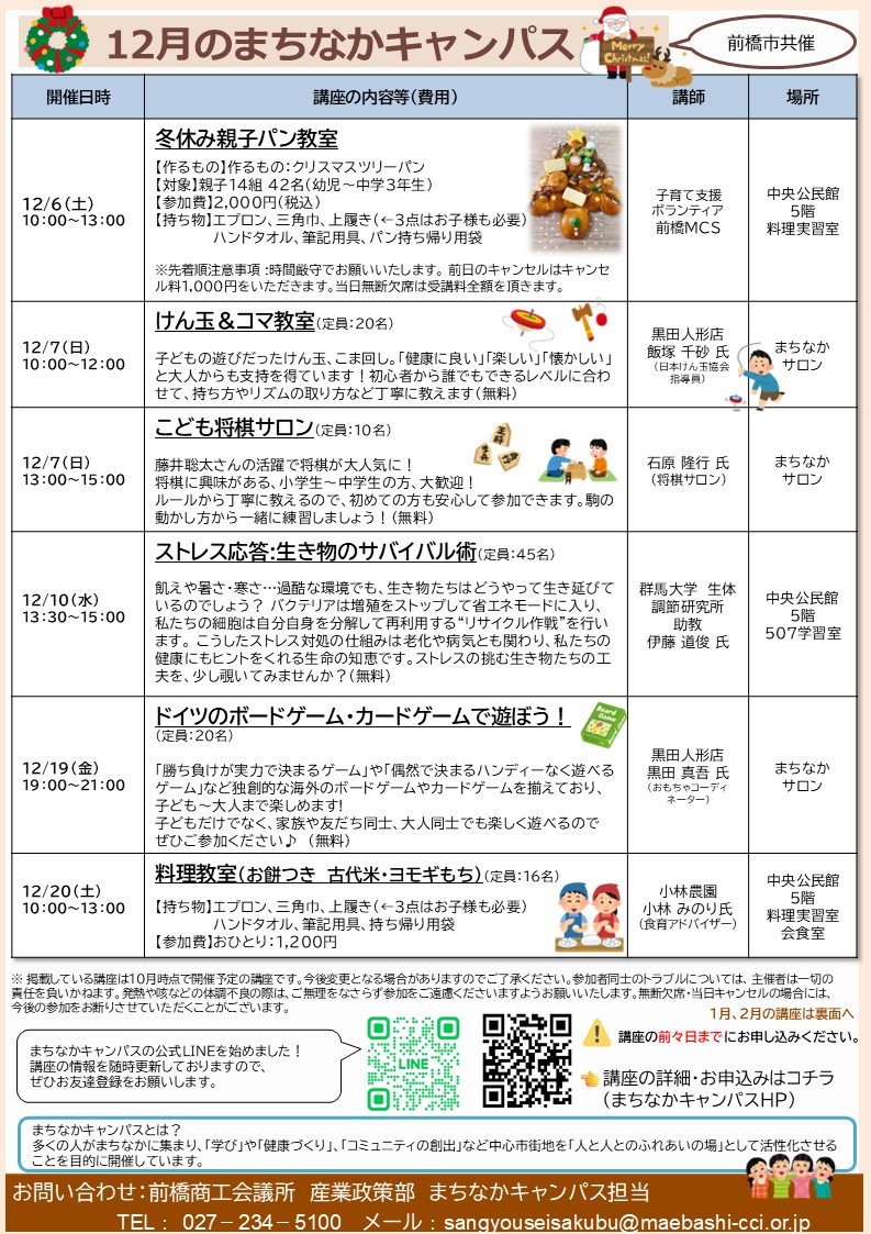 お問合せ先 前橋商工会議所 まちなかキャンパス担当